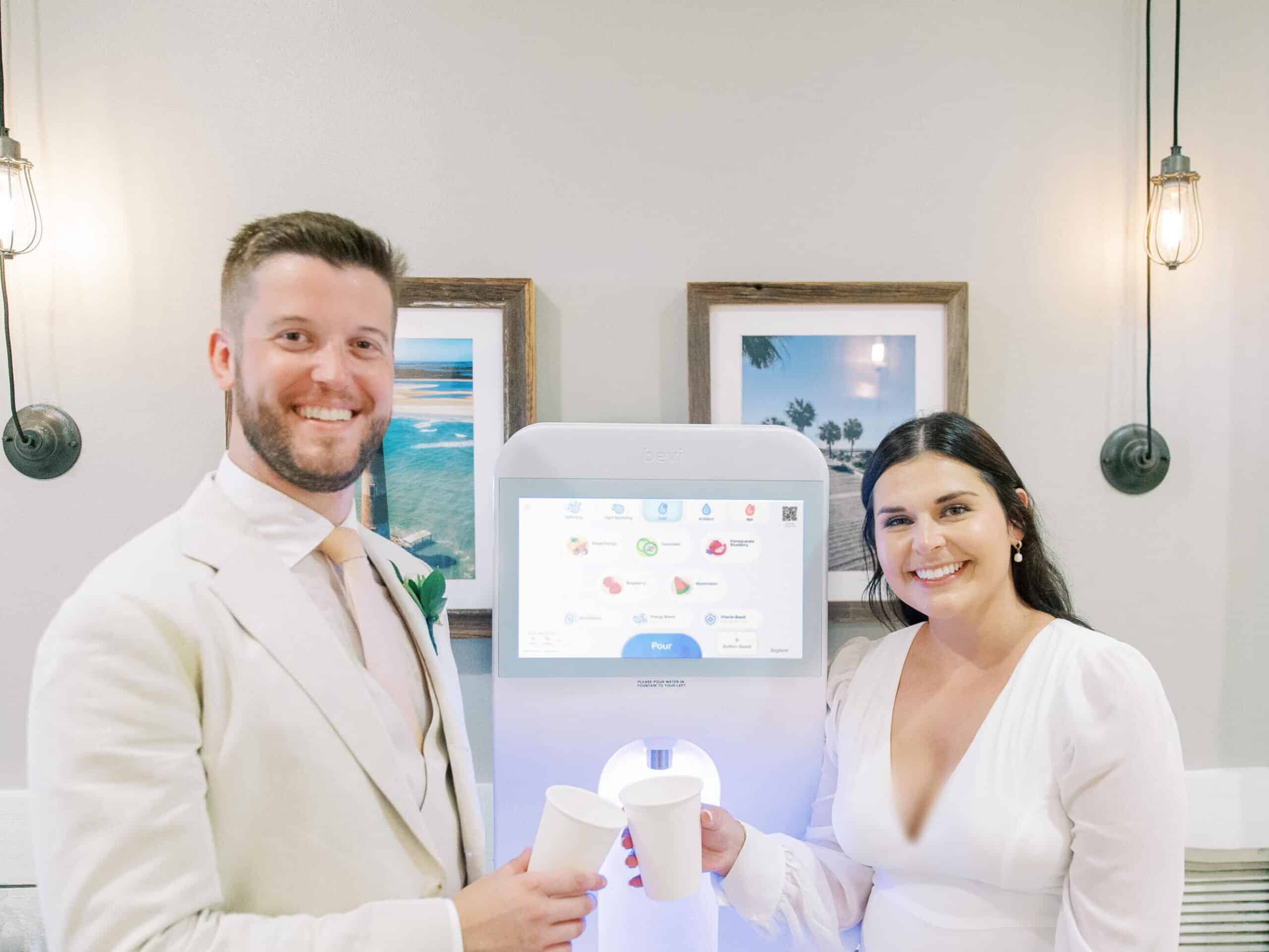 Ryan and Brooke continued getting to know each other and it didn’t take long for them to figure out that they had found the person they had both been searching for. Ryan proposed, and they started planning a destination elopement in Hilton Head Island, South Carolina. A few days out from their wedding day, they were doing a walk through of the venue they had chosen, sight unseen. They walked into the lobby and to their surprise, there was a Bevi machine.