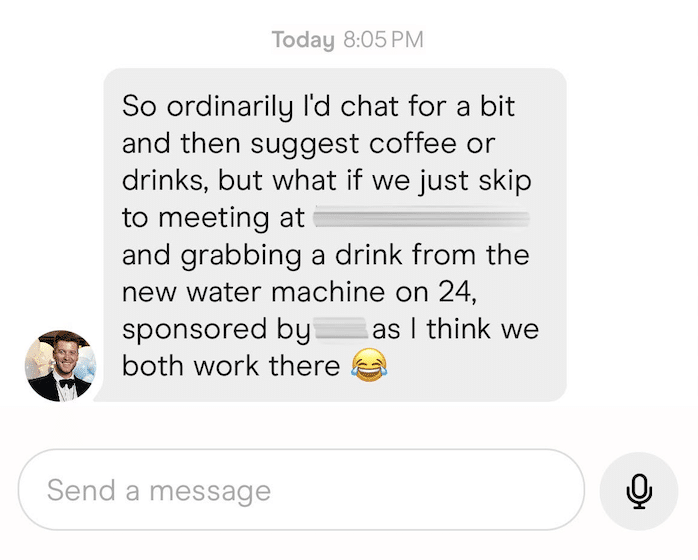 The excitement was real at their office building for the new Bevi machine, and Ryan proposed meeting there instead of the typical coffee or drinks date.